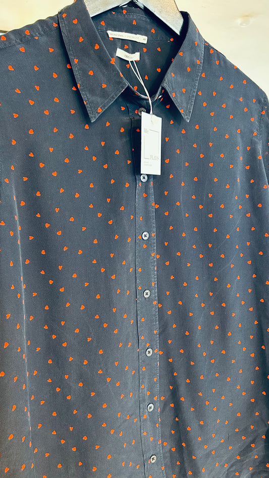 AusverkauftMONOPRIX Seidenbluse dunkelblau/rot Herzen