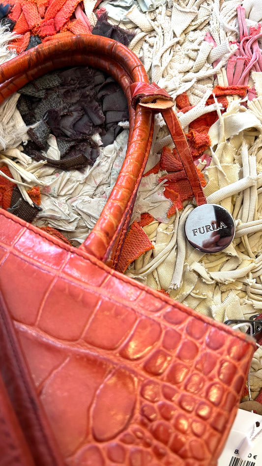 AusverkauftFURLA Vintage Handtasche orange/rot Kroko