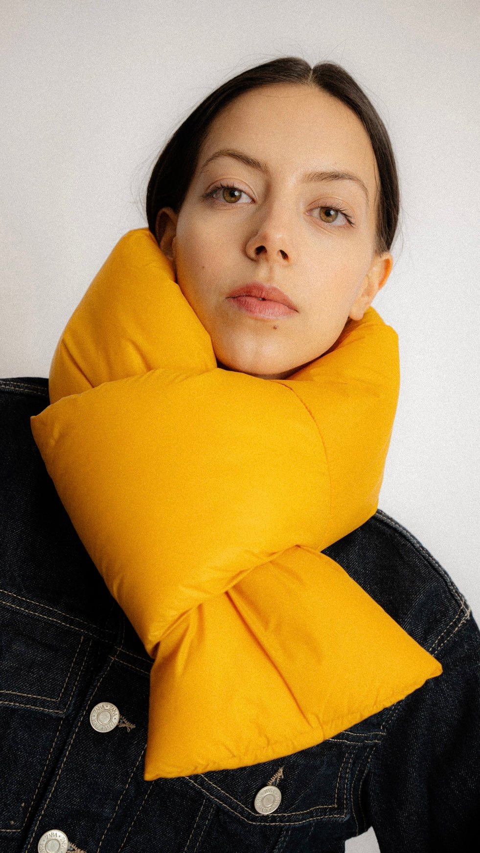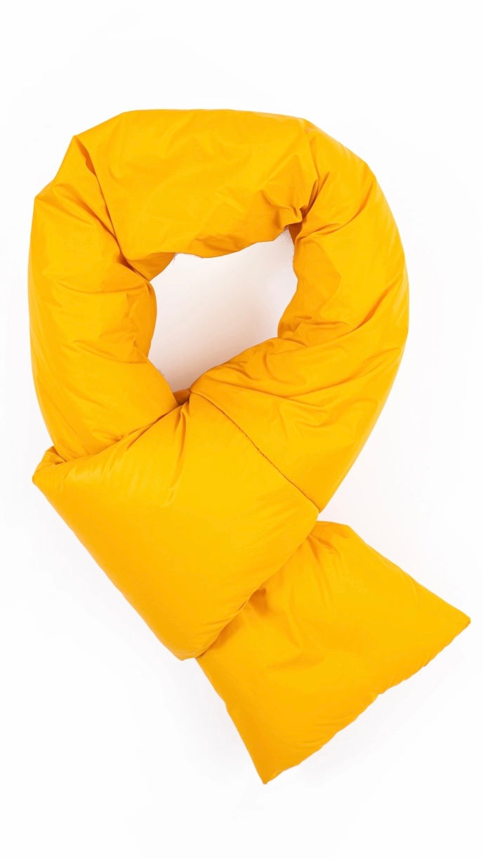 Weicher, gepolsterter Minischal aus recyceltem Tech-Nylon – wasserabweisend, warm und perfekt für Reisen und den urbanen Alltag.